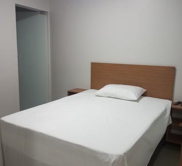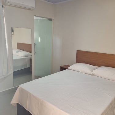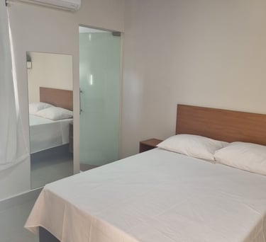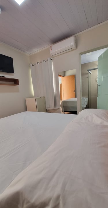 O quarto casal oferece conforto com ar-condicionado, TV e frigobar, uma cama casal , proporciona uma experiência com todas as comodidades para uma estadia relaxante.